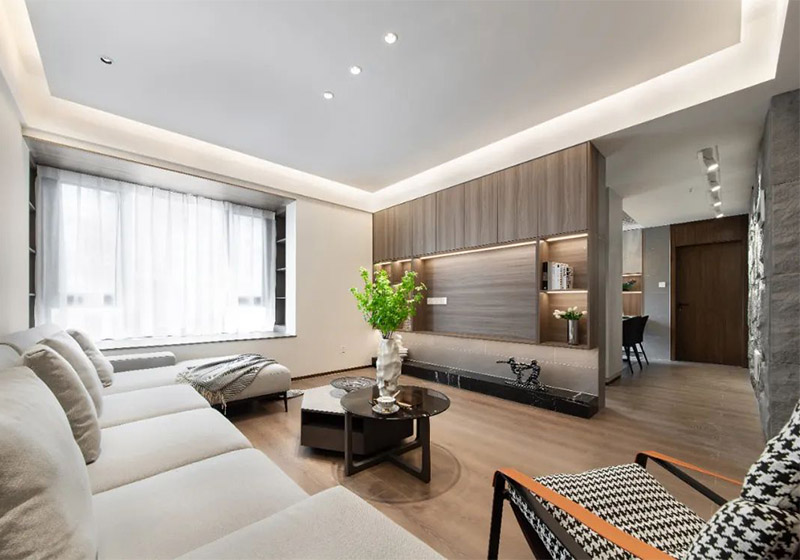 • 145㎡簡約風(fēng)三人居 無主燈設(shè)計(jì)+仿石材真get
